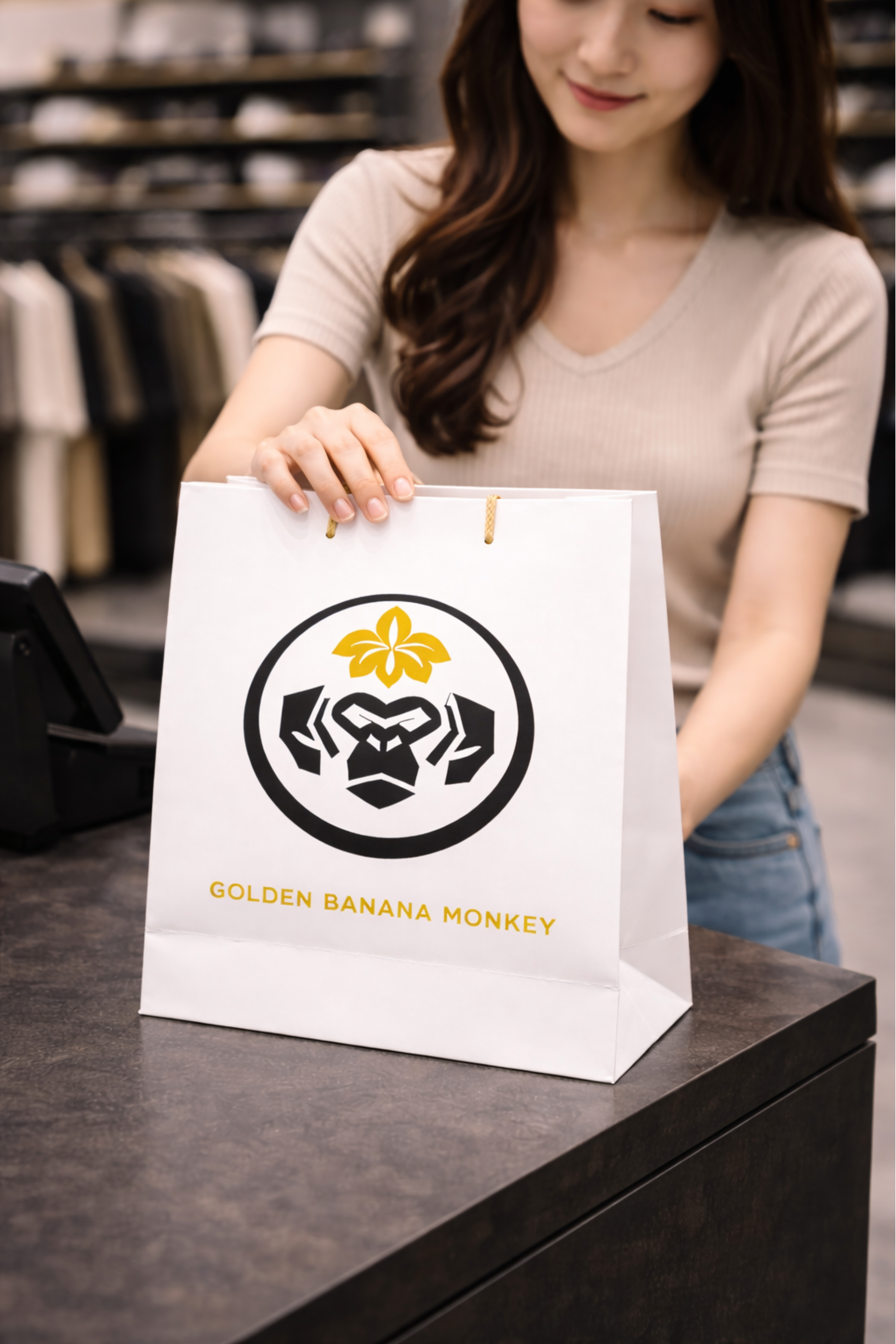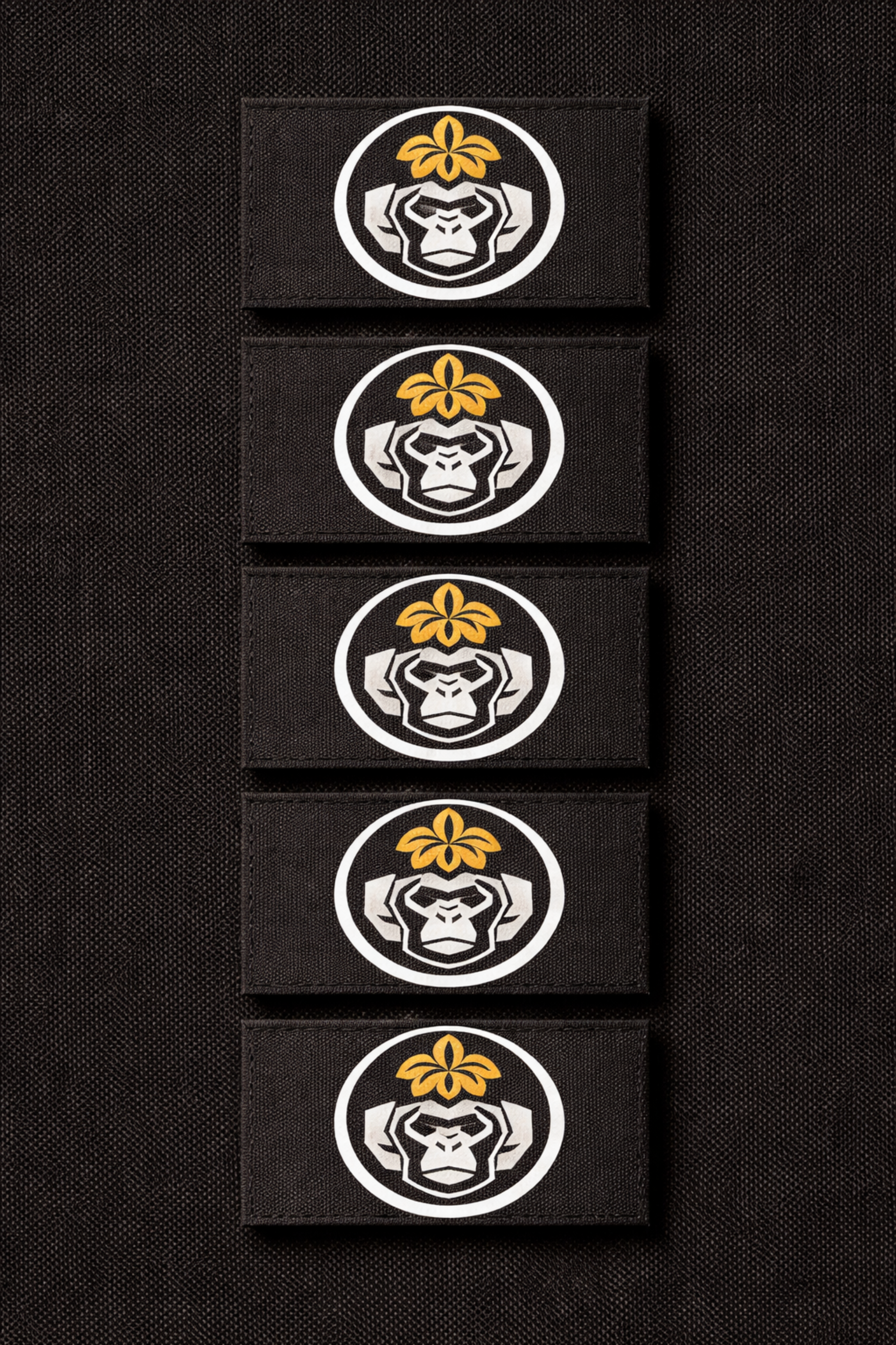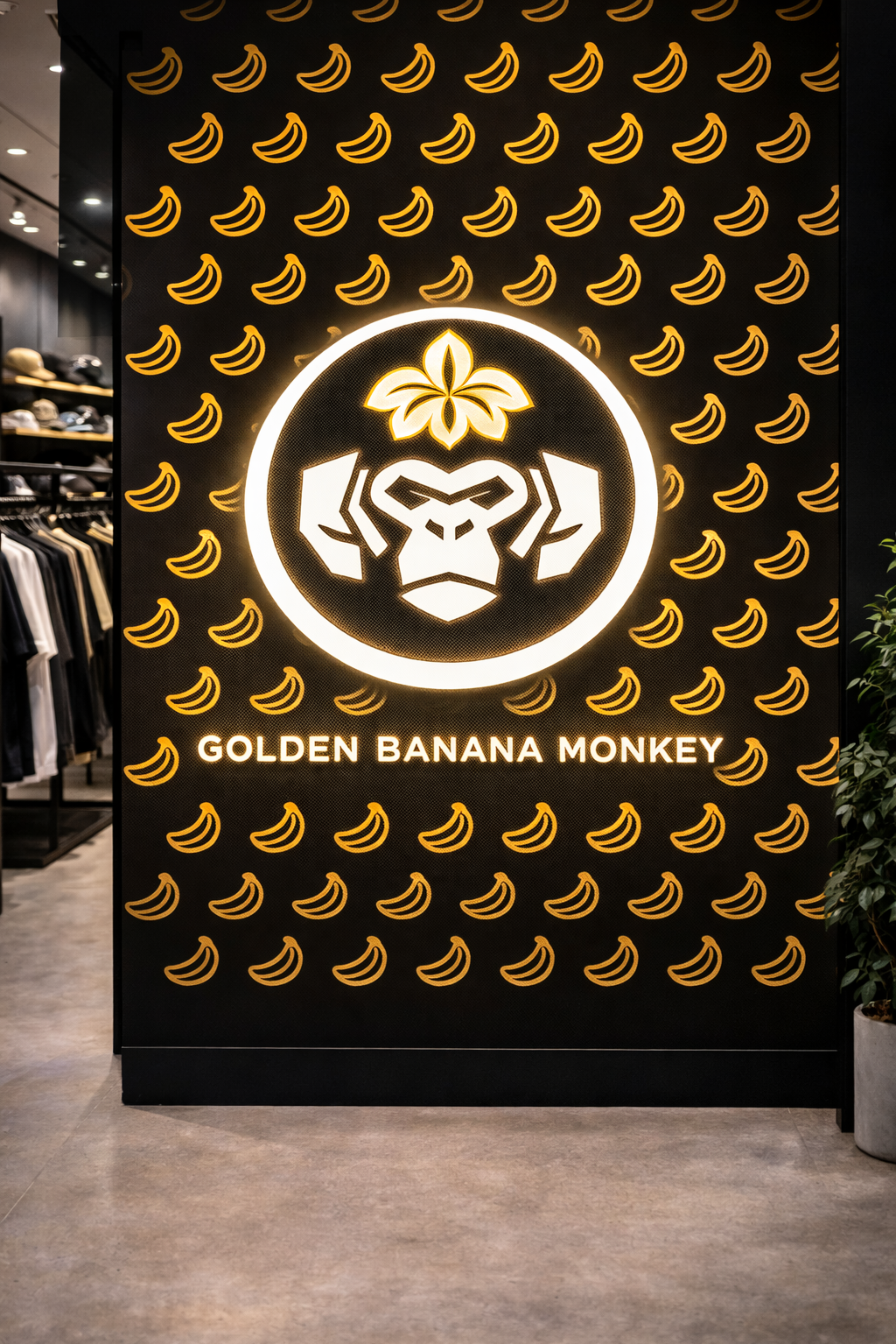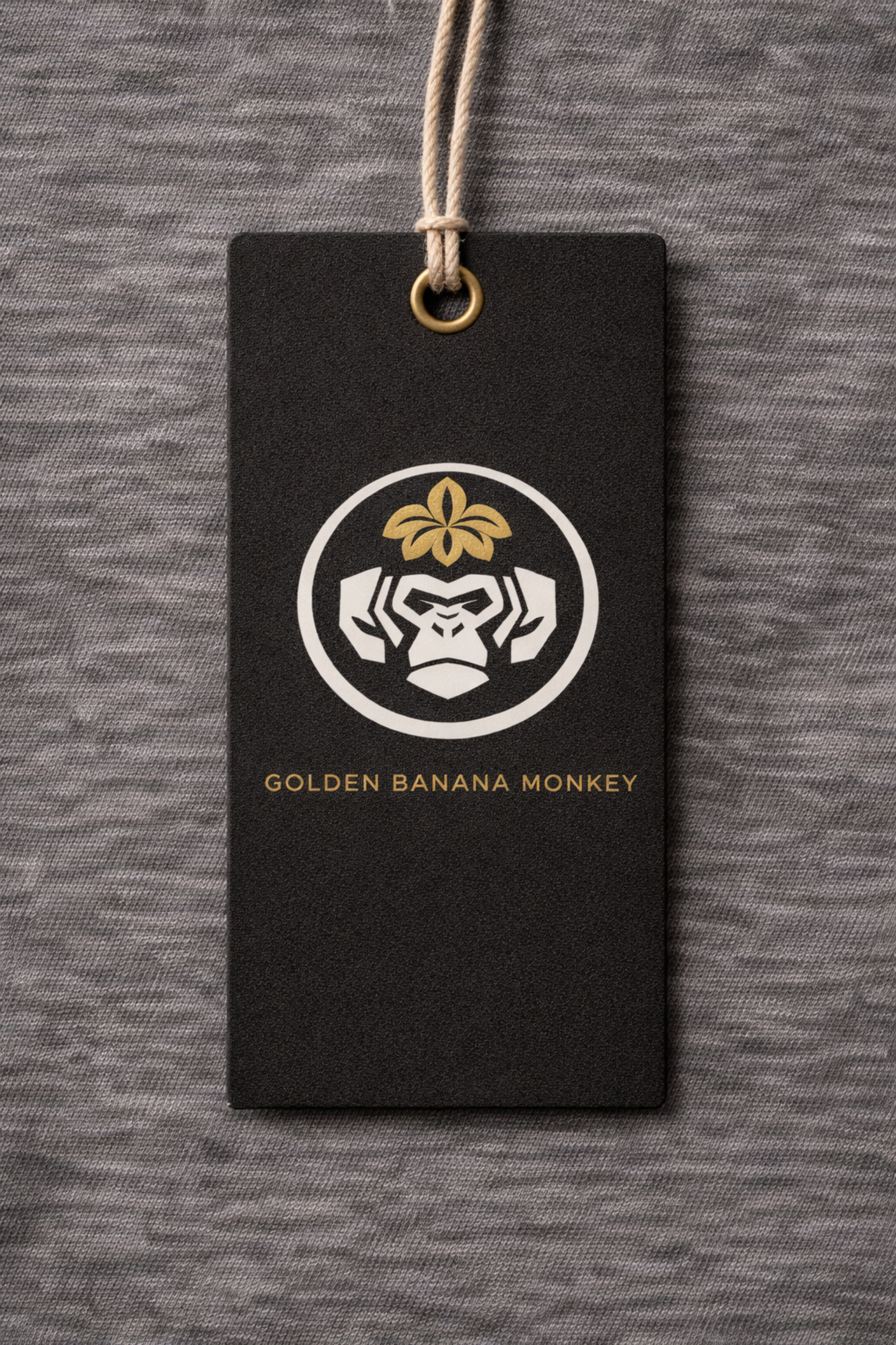 「金蕉猴潮品」のロゴは、猿のトーテムを核とし、力・知恵・仲間の精神を象徴しています。金色のバナナフラワーは自然のエネルギーとブランドの生命力を表現し、幾何学的な猿のシルエットと融合することで独自の現代的シンボルを形成しています。