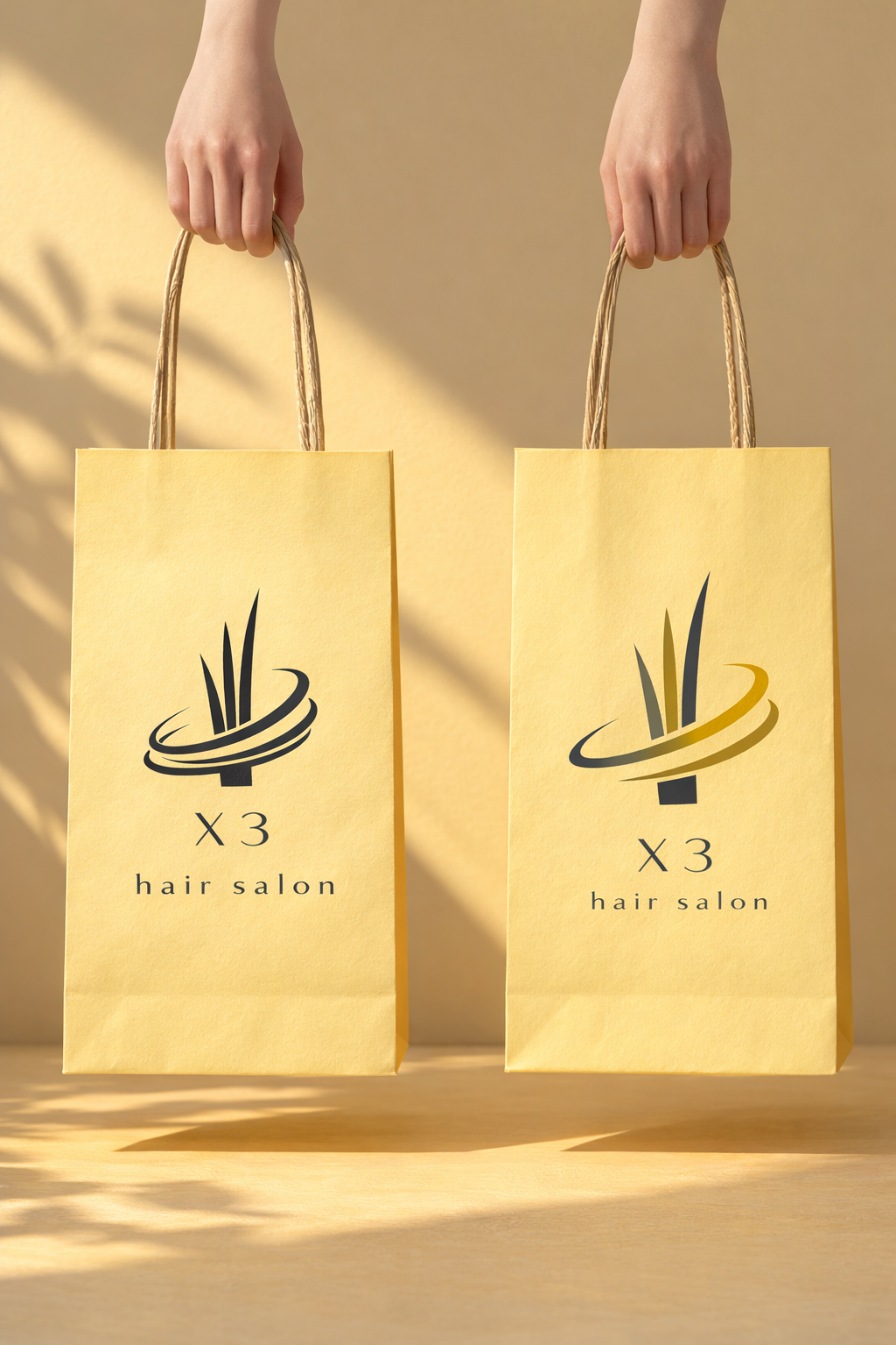 標誌以「髮絲向上延展」為核心概念。三道線條象徵造型的層次與生長感,環形結構代表燙髮的律動與流動。整體以留白與克制構成,呈現安靜而高端的日式美學。